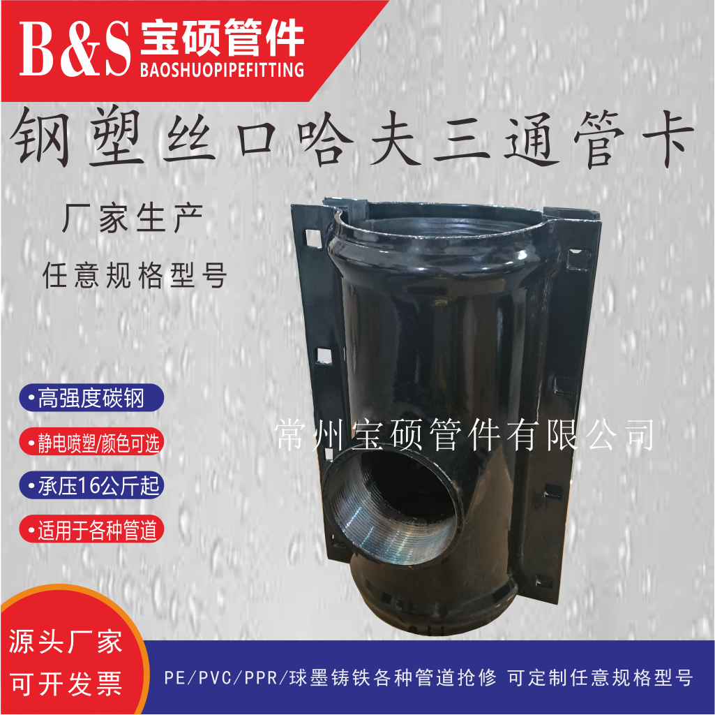 總之,鋼塑絲口哈夫三通管卡是一種高效、可靠的管道連接設備,適用于各種管道系統中的三通連接和固定,能夠提高管道運行的安全性和可靠性。